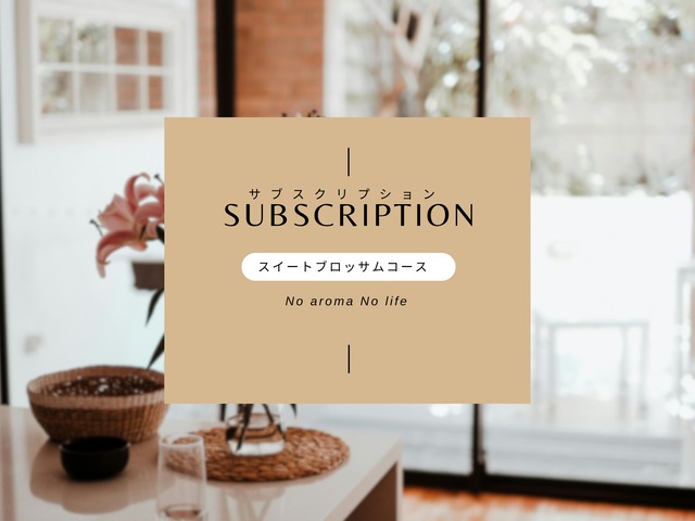 サブスクリプションのスイートブロッサムコースです。 2ヶ月に1回、お花の香りや甘い香りなフレグランスミストが届きます。 スケジュールは以下の通りです。 1・2月・・・食欲抑制フレグランスミスト 3・4月・・・桜フレグランスミスト 5・6月・・・桃色フレグランスミスト 7・8月・・・愛され香るフレグランスミスト 9・10月・・・金木犀フレグランスミスト 11・12月・・・安眠オイル やさしい甘さと華やかさのある、女性らしいフローラル系をセレクト。 自分をもっと愛したくなる香りたちです。